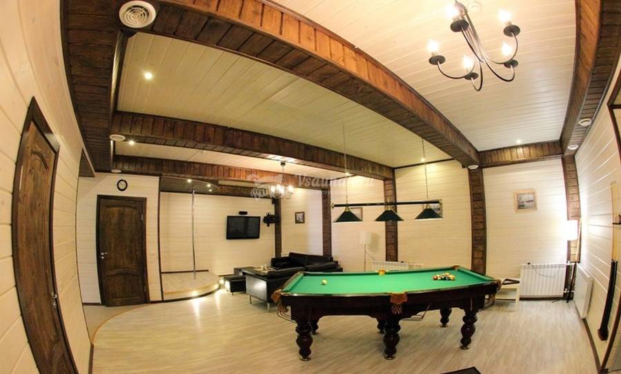 - огромный гостевой зал с DVD, большим плазменным телевизором, караоке, Wi-Fi, бильярдом, кальянной зоной и пилоном (у нас вы можете заказать стриптиз);